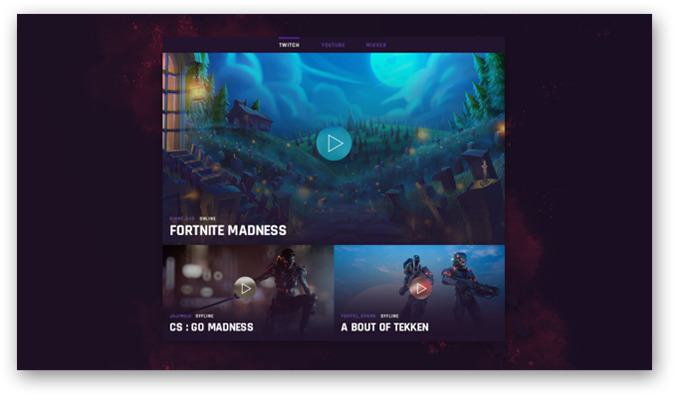The amazing stream box and stream list elements that come with Overworld let you share videos of your gaming power moves, complete with a one-click streaming platform switch.