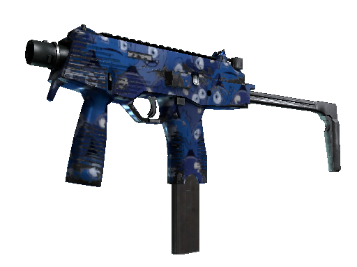Manufactured in Switzerland, the cutting-edge MP9 SMG is an ergonomic polymer weapon favored by private security firms. It has been airbrushed with cartoon spirits.